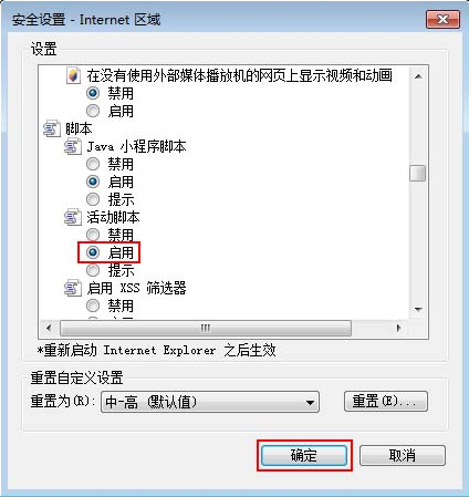 3、找到“脚本”一栏,将“活动脚本”设置为“启用”后确定即可。
