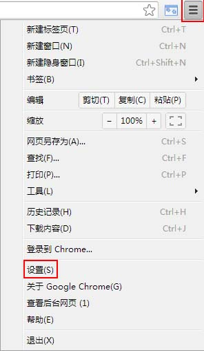 1、点击浏览器右上角的图标,在弹出的菜单中选择“设置”;
