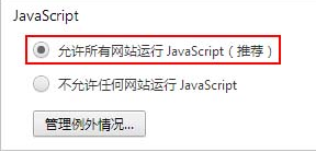 4、在“JavaScript”选项中选择“允许所有网站运行JavaScrip”后确定即可。